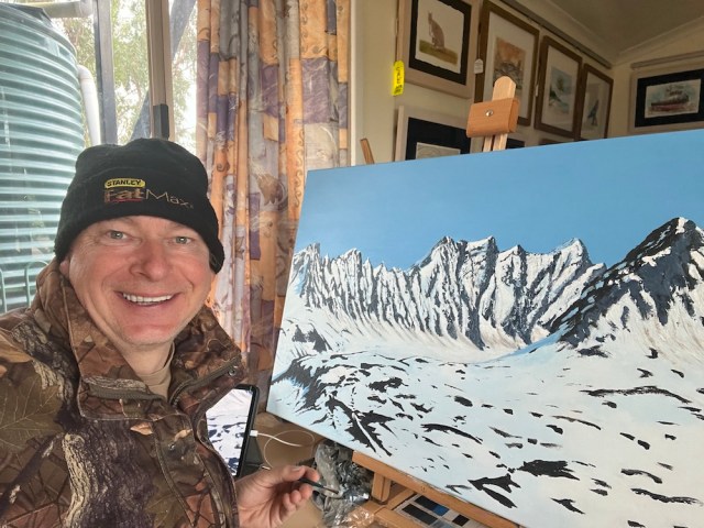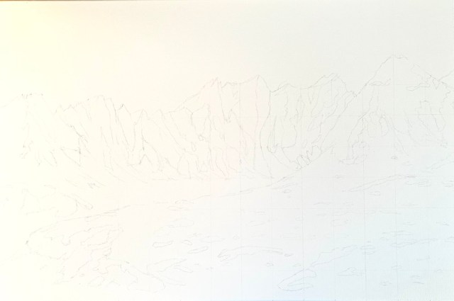 Much more details in the mountains than Thompson Pass acrylic painting.