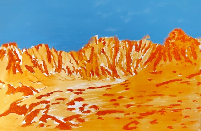 I don’t have heating in the studio as it’s an old converted metal train carriage and the sun usually heats it up. How that day I wanted to start painting early and it was only about 5 deg Celsius that warmed up to about 21C after lunch. or 41F to 69.8F in old money.