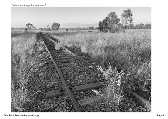 One of the best parts of creating course content is the field trips. The train line at the bottom of Possum Park was a good example of two point perspective. And a good opportunity to do some bird watching.