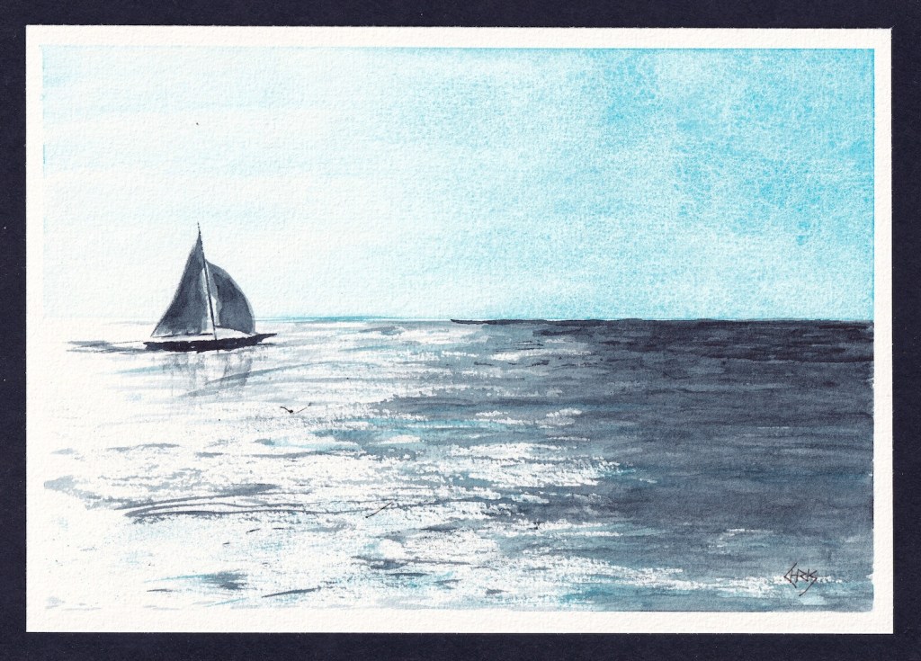 The aim is to learn how to use watercolour brushes, guide paint around your paper and develop a painting using tone with Payne’s Grey and shades of blue.