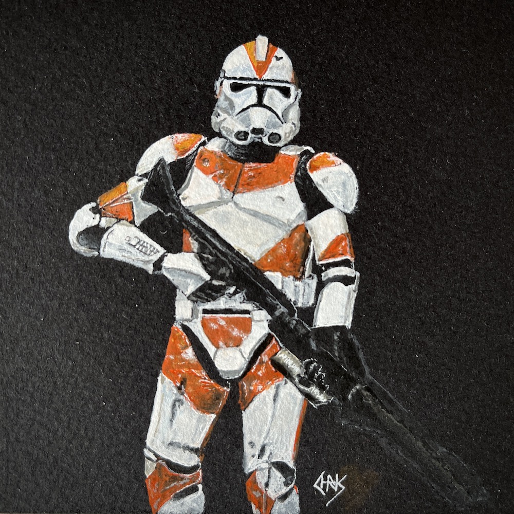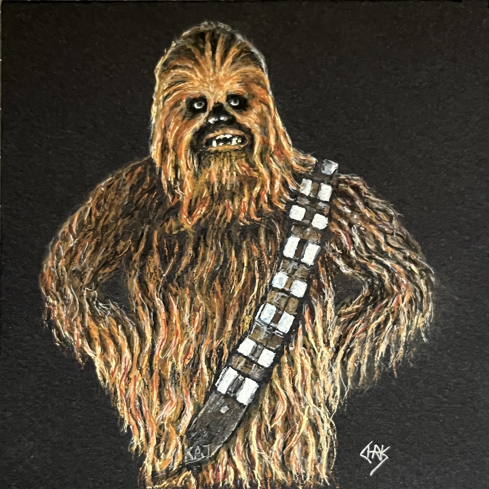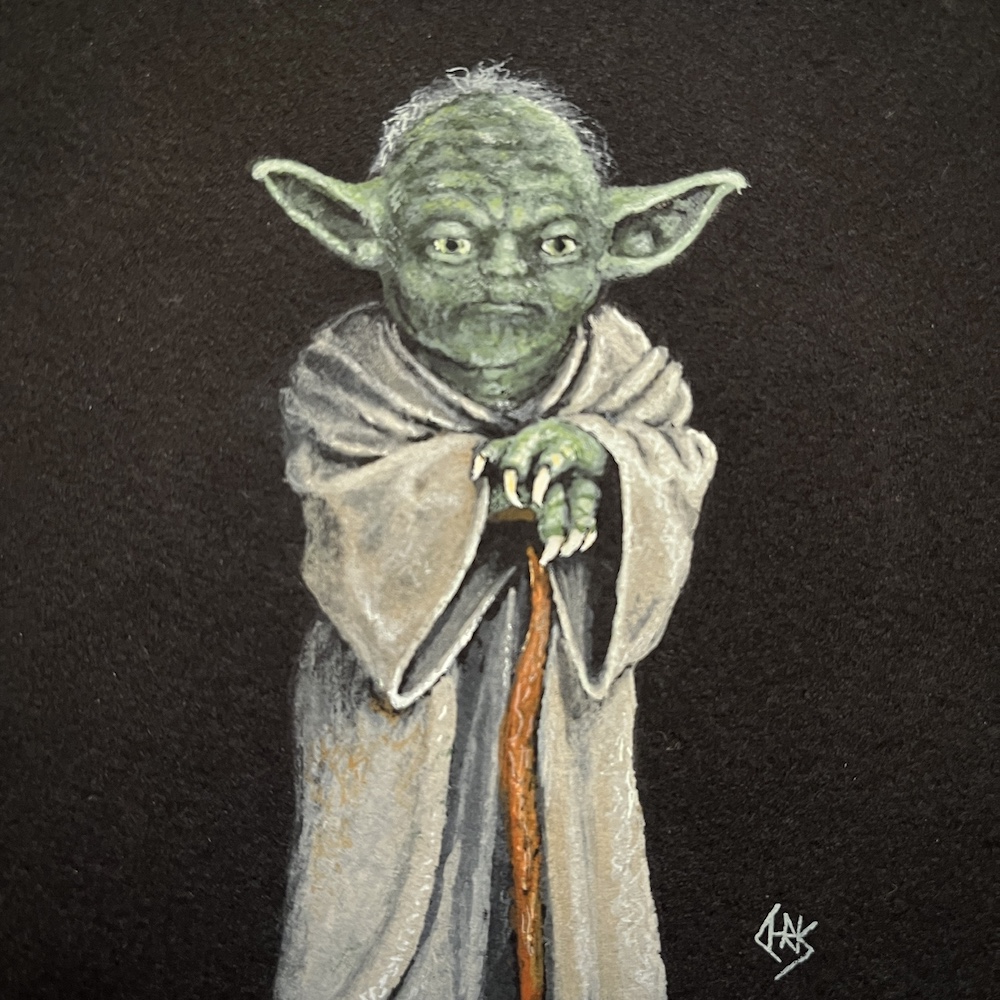 This collection started on Star Wars Day, May 4th, and will probably grow into some of my favourite movie characters and scenes. These are small paintings around 10 x 10cm on black card and will also include some on Arches watercolour paper in the future.