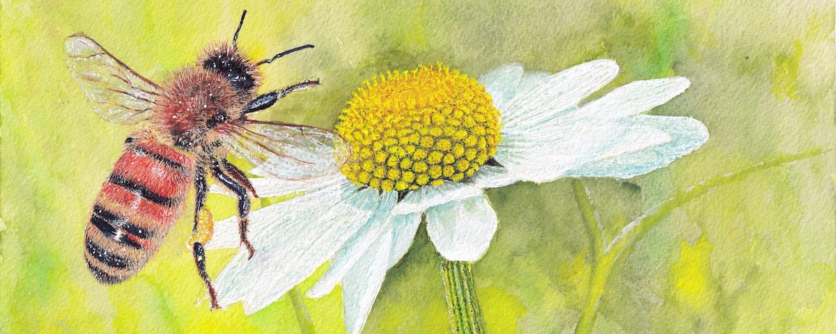 The bee was photographed on one of the flowers in my garden, hopefully I got the scale right once I sketched them both together