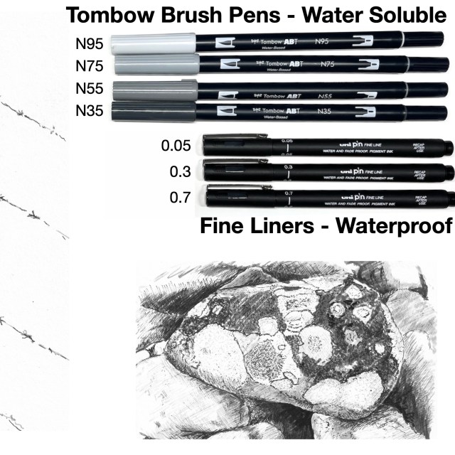 The aim is to learn how to use fine line and tombow brush pens together to create a better tonal range than just pens alone.